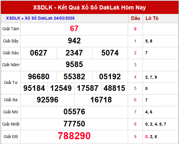 Từ dữ liệu XS DAKLAK 30 ngày gần đây kết hợp chu kỳ lặp, nhiều con số nổi bật đang dần xuất hiện, tạo cơ sở tham khảo quan trọng cho dự đoán xổ số DAKLAK ngày 31 tháng 3 năm 2026.