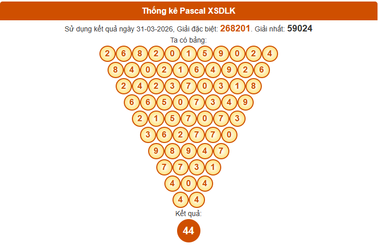 Áp dụng bảng Pascal vào dự đoán XS Đắk Lắk ngày 7/4/2026 đang mang lại nhiều tín hiệu tích cực, giúp người chơi nhanh chóng xác định các cặp số sáng giá dựa trên quy luật số học.