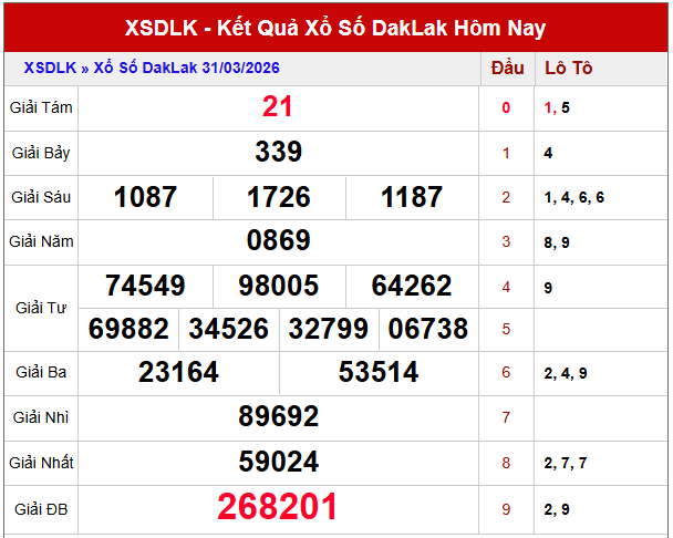 Dựa trên thống kê XS Đắk Lắk 30 ngày gần đây kết hợp phân tích chu kỳ lô tô, nhiều con số nổi bật đang dần lộ diện, mang đến những gợi ý đáng chú ý cho dự đoán xổ số Đắk Lắk ngày 7/4/2026.