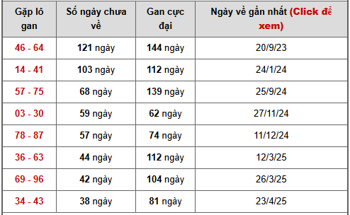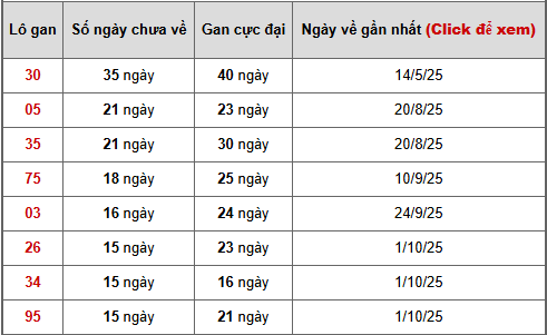 - Bảng thống kê lô gan Đồng Nai lâu chưa ra tính đến ngày 21/1/2025