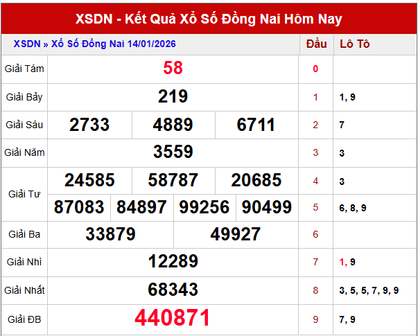 Toàn bộ nội dung dự đoán Xổ số Đồng Nai ngày 21 tháng 1 năm 2026 trên đây được XOSODAIVIET tổng hợp từ nguồn dữ liệu thực tế cùng các chỉ số thống kê đáng tin cậy. Mong rằng những thông tin này sẽ mang đến cho bạn thêm gợi ý hữu ích để tham khảo và lựa chọn con số may mắn trong kỳ quay tiếp theo.