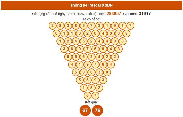 Phương pháp Pascal đang ngày càng được nhiều người quan tâm nhờ khả năng ứng dụng linh hoạt khi soi cầu xổ số Đồng Nai ngày 4/2/2026. Đặc biệt, bảng Pascal mới nhất hỗ trợ sàng lọc nhanh các cặp số sáng, giúp người xem dễ theo dõi và đánh giá xu hướng.