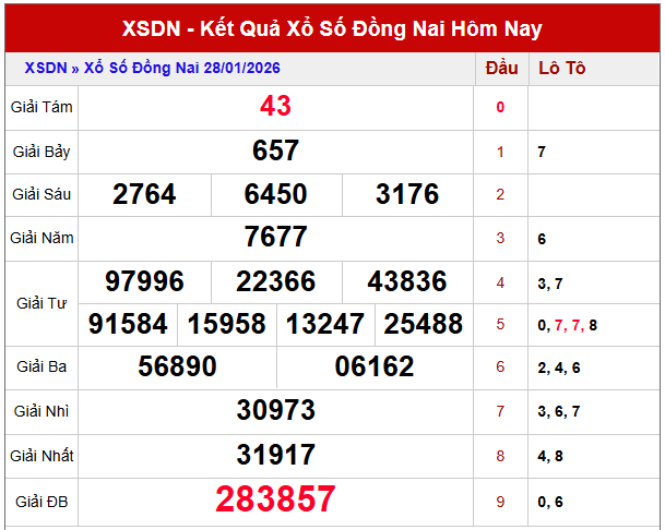 Toàn bộ nội dung dự đoán Xổ số Đồng Nai ngày 4 tháng 2 năm 2026 trên đây được XOSODAIVIET tổng hợp từ nguồn dữ liệu thực tế cùng các chỉ số thống kê đáng tin cậy. Mong rằng những thông tin này sẽ mang đến cho bạn thêm gợi ý hữu ích để tham khảo và lựa chọn con số may mắn trong kỳ quay tiếp theo.