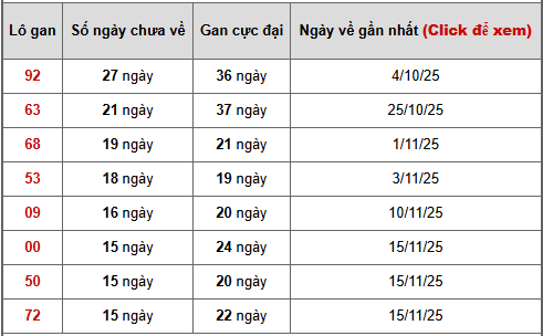 - Bảng thống kê lô gan Hồ Chí Minh lâu chưa ra tính đến ngày 10/1/2025