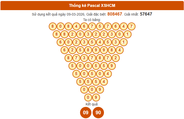 Phương pháp Pascal là một trong những cách soi cầu được nhiều người áp dụng khi phân tích XS Hồ Chí Minh ngày 14/3/2026. Với cấu trúc logic đặc trưng của bảng Pascal, những cặp số tiềm năng có thể được nhận diện nhanh chóng từ dữ liệu kết quả gần đây.