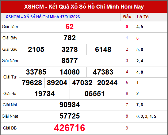 Dự đoán XSHCM ngày 19/1/2026 với những phân tích chuyên sâu, chọn lọc bộ số đẹp đón lộc Thần Tài. Cập nhật soi cầu xổ số Hồ Chí Minh ngày 19 tháng 1 năm 2026 một cách toàn diện: từ giải tám, phân tích đầu – đuôi cho đến những cặp số 2 chữ số sáng giá nhất, giúp bạn tự tin tham khảo trước giờ quay thưởng.