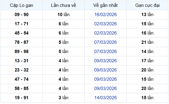 Theo bảng số liệu, cặp lô đáng chú ý nhất hiện tại là 09 – 90, tiếp theo là 17 – 71, 45 – 54 và 78 – 87 – đây là những cặp số đang ở vùng gan trung bình đến gan cao. Người chơi thường kết hợp thêm dữ liệu chu kỳ khi soi cầu XSHCM ngày 28/3/2026 để lựa chọn cặp số theo thống kê gan.