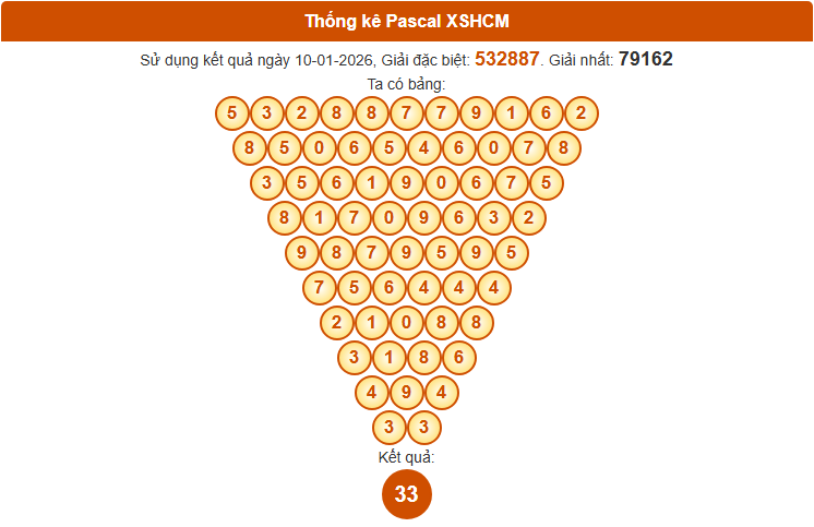 Phương pháp Pascal trở thành “vũ khí bí mật” của nhiều người chơi lâu năm khi dự đoán xổ số Hồ Chí Minh ngày 12/1/2026. Bằng việc tham khảo bảng Pascal mới nhất, bạn có thể dễ dàng tìm ra những cặp số tiềm năng, gia tăng cơ hội thắng lớn. Hãy cùng khám phá chi tiết đầy thú vị ngay sau đây!