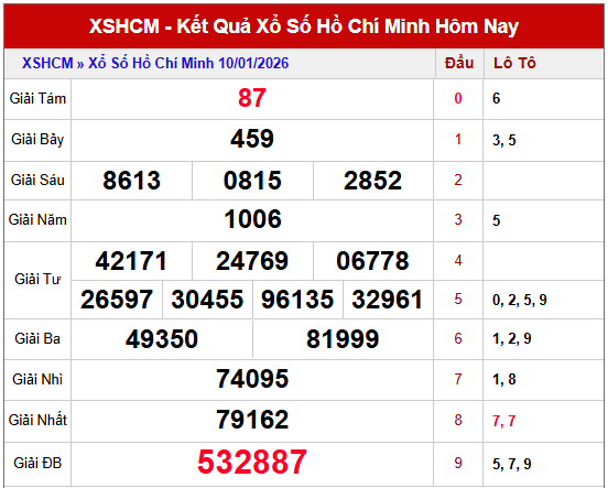 Dựa trên kết quả XSHCM 30 ngày gần đây, các xu hướng bất ngờ đã được hé lộ. Nhờ những phân tích chi tiết này, dự đoán xổ số Hồ Chí Minh ngày 12/1/2026 được chọn lọc kỹ lưỡng, mang đến cho bạn một nguồn tham khảo hữu ích, giúp nâng cao cơ hội trúng thưởng.