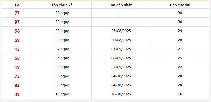 ⭐️ Những cặp số lô gan XSHCM lâu xuất hiện nhất: Lô gan 70 lâu ra nhất (30 ngày)