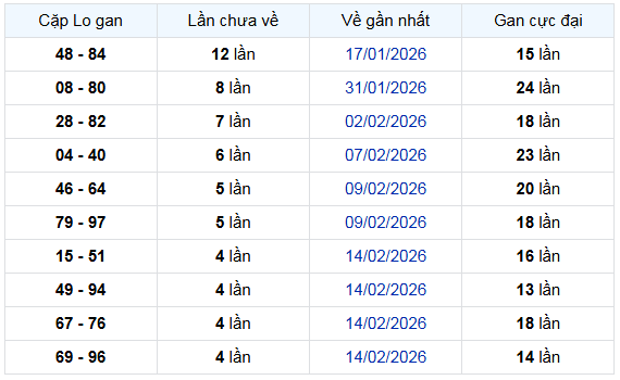Dựa trên bảng thống kê cặp lô gan mới nhất, nhiều cặp số đang bước vào giai đoạn tích lũy chu kỳ, tạo nên những tín hiệu đáng chú ý khi theo dõi xu hướng quay thưởng thời gian gần đây, đồng thời mang thêm cơ sở cho dự đoán xổ số Hồ Chí Minh ngày 2 tháng 3 một cách khách quan hơn.