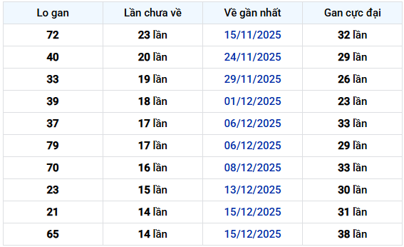 21 và 65: Cùng gan 14 lần, đặc biệt lô 65 từng có gan cực đại rất lớn, nên vẫn là con số đáng chú ý nếu chu kỳ tiếp tục kéo dài.