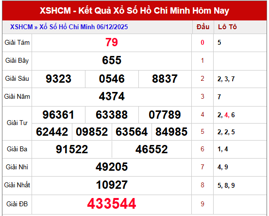Kết quả XSHCM ngày 8/12: 45 - 54