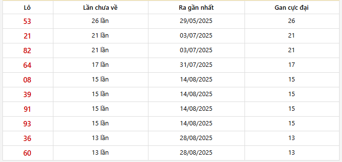 ⭐️ Những cặp số lô gan XSQB lâu xuất hiện nhất: Lô gan 53 lâu ra nhất (26 ngày)