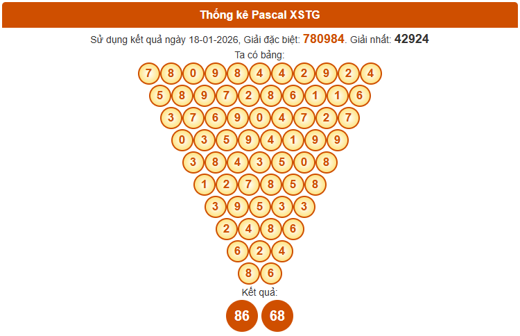Phương pháp Pascal đang dần khẳng định hiệu quả và được nhiều chuyên gia tin dùng trong quá trình soi cầu xổ số Tiền Giang ngày 25/1/2026. Dựa trên bảng Pascal cập nhật mới nhất, việc sàng lọc các cặp số tiềm năng trở nên chính xác hơn.