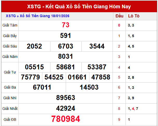 Dự đoán XSTG ngày 25/1/2026 được xây dựng trên nền tảng phân tích dữ liệu kỹ lưỡng, bám sát quy luật xuất hiện của các con số và các xu hướng mới nhất. Những gợi ý bộ số nổi bật trong phần soi cầu XSTG ngày 25 tháng 1 năm 2026 sẽ hỗ trợ bạn nâng cao khả năng lựa chọn trước thời điểm mở thưởng.