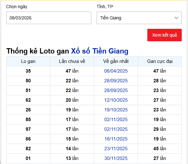 Nhìn tổng thể, bảng gan Tiền Giang đang có xu hướng dồn vào một vài con số gan dài ngày. Khi các mốc kỷ lục bắt đầu bị chạm tới, khả năng xuất hiện những cú “xả gan mạnh” là khá cao, anh em nên theo dõi sát để bắt đúng điểm rơi.