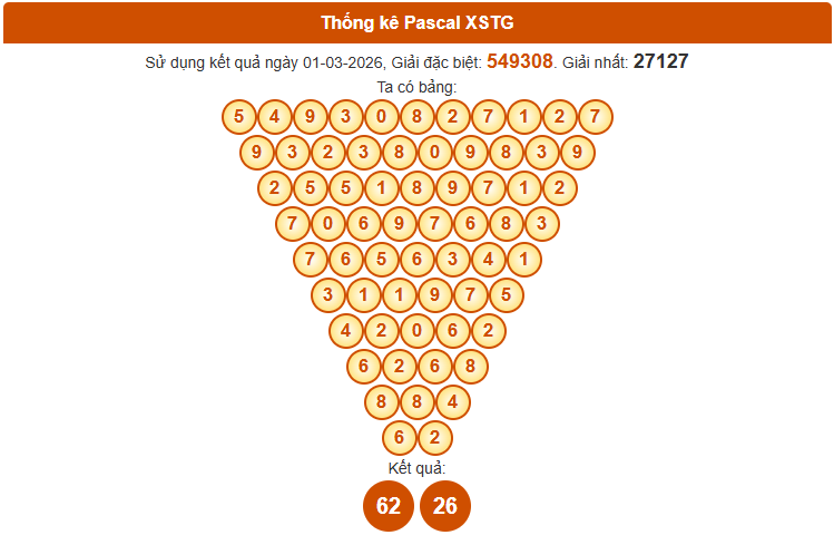 Phương pháp Pascal đang được ưa chuộng khi soi xu hướng kết quả Tiền Giang ngày 8/3/2026. Nhờ cấu trúc logic rõ ràng, bảng Pascal giúp nhận diện nhanh các cặp số tiềm năng.