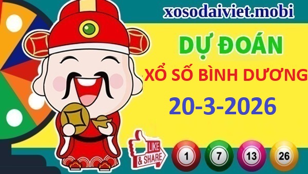 Thần tài dự đoán XSBD 20/3/2026 siêu chuẩn xác hôm nay. Dự đoán XS Bình Dương ngày 20 tháng 3 năm 2026 thứ 6 siêu chính xác và miễn phí.