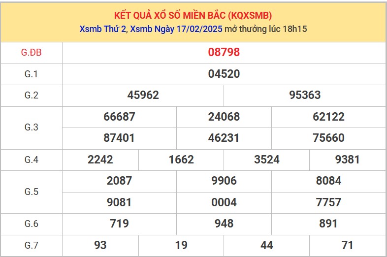 Cùng đi xem lại bảng thống kê KQXSMB mở thưởng trước đó để giúp bạn tự tin hơn khi lựa chọn các con số cho dàn số miền Bắc 18/2/2025.